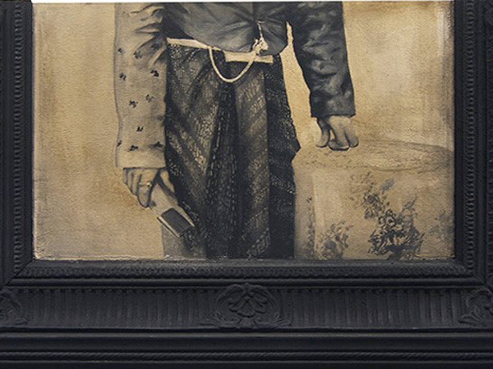 Inspired by the rich history of the region, the Moyang series of portraits by Fyerool Darma stand in some ways as an attempt to reconsolidate, and simultaneously reposition in the present context, individuals of historical significance who have become gradually lost to the past. These “portraits”, if they can be called so, have been truncated, cropped, and in some cases, blotted out with charcoal so as to obscure the images of the individuals they are intended to portray. And even their frames, covered in the black sheen of charcoal, point to, in the artist’s own words, a “negligence of these (native) narratives”. The use of cropping (of the entire portraits) and charcoal to blot out recognisable features, can be read as an invitation to viewers to explore, through their own research, in greater depth the identities of these individuals who have been omitted from mainstream historical study – highlighting the subtle undertones of interactivity embodied by the works.