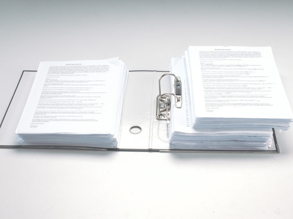 Formerly a banker, Lee Wen left the profession to become a member of The Artists Village artist collective in the 1980s. Taking its title from a well-worn phrase often bandied about in media and rallying speeches, “World Class Society” is a tongue-in-cheek installation that takes aim at his former profession as well as at the nation’s global aspirations and constant push for excellence. Audiences listen to Lee’s emphatic speech questioning the notion of a ‘world class’ status, after which they are invited to answer a questionnaire on what it takes to be a ‘world class’ society, and can take home a free ‘World Class’ badge.