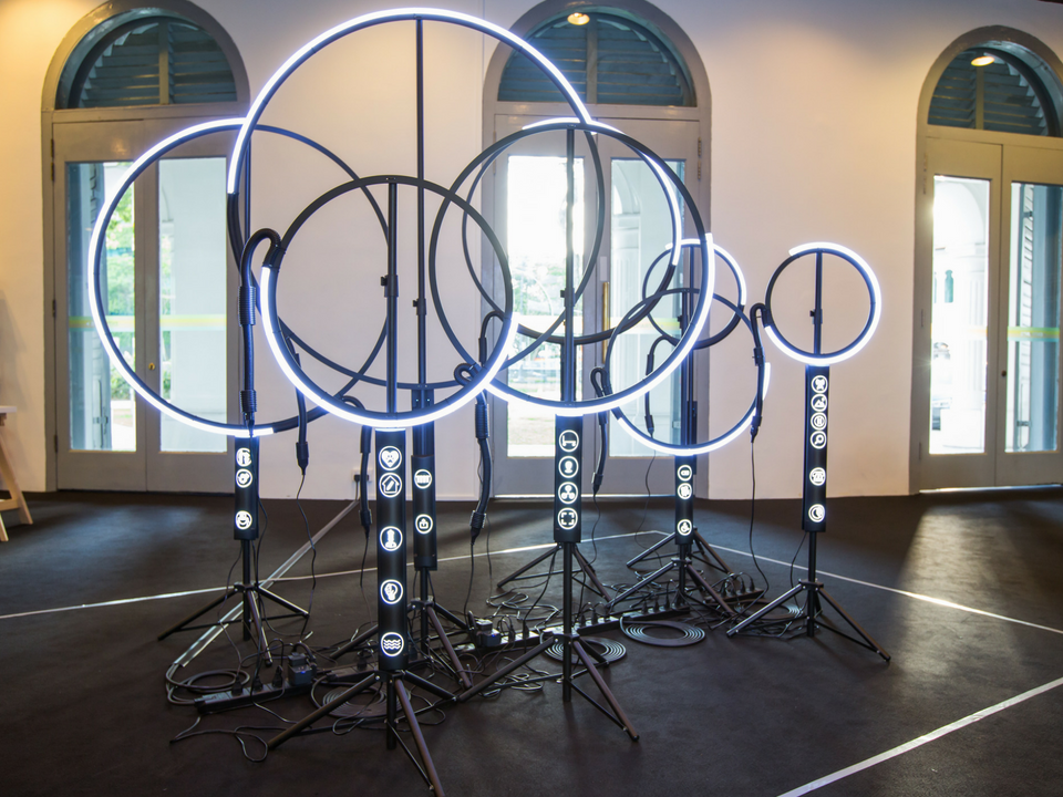 Exhibited alongside the sculpture, a bound volume of mind maps stemming from a workshop conducted by the artist offers visitors an opportunity to peer into the psyche of the artistic community in Singapore. These artists’ responses that were collated served as additional material for the conceptualisation of the final work presented.