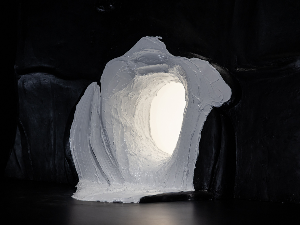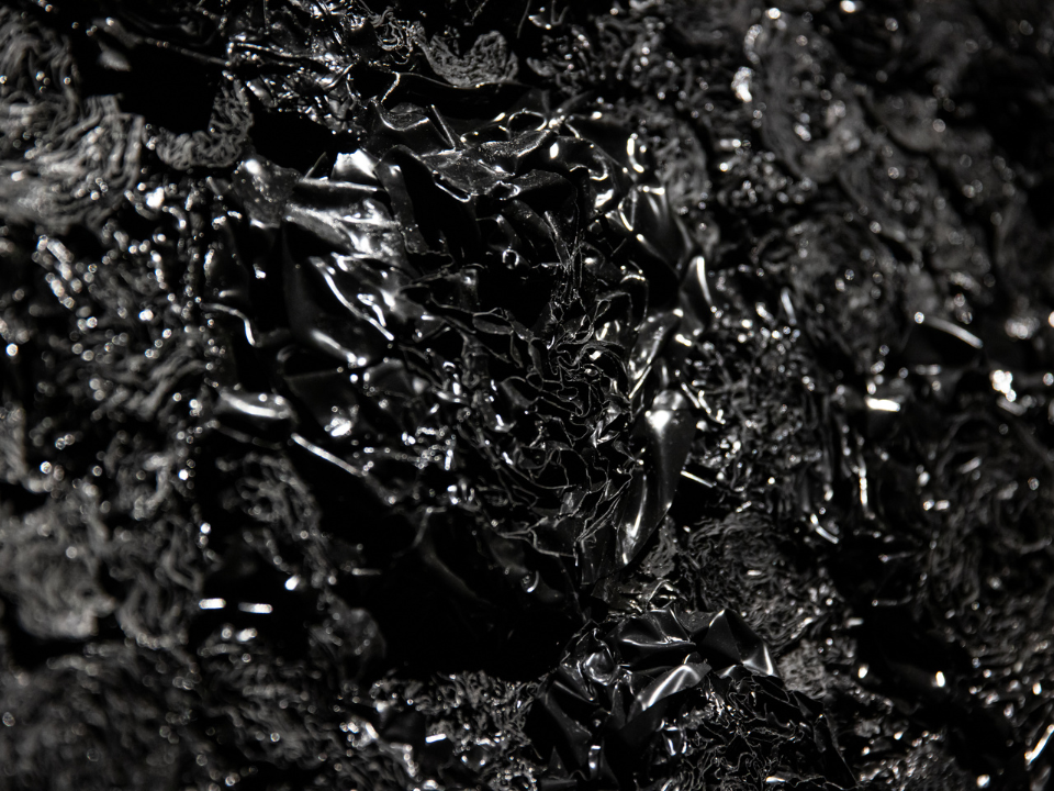 Fetish, one of Lee’s best-known series, features resplendent textures and colours composed of dried paint which is cut, rolled and shaped. Beginning in 2009, these experiments with paint in different states—liquid, solid, congealed—freed her from the boundaries of the frame and prompted her to work more spontaneously with the space in which paintings are situated. This allowed her to develop a sculptural and spatial practice within her painting practice.