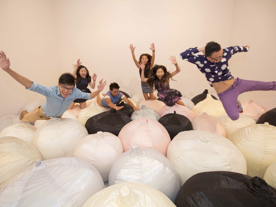 Filling an entire room, noon-nom invites the visitor to not only touch the artwork, but also be touched, by getting up close and personal with a familiar form that is nurturing, sensual, and sacred: the human female breast. These rotund, soft sculptures covered in organza are part of the Thai artist’s ongoing and extensive body of works across different media and genres. In so doing, she questions prevailing attitudes towards the female breast in order to reassert its significance as a natural form that symbolises nourishment and comfort, as well as signifying the potency of the sensuous and spiritual feminine body.