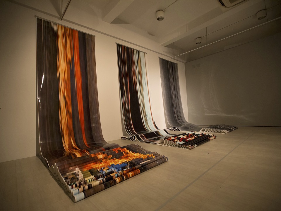 Dinh Q Le's Scroll series appropriates of iconic images of the Vietnam War as the titles reveal: Thich Quang Duc, the burning monk, Phan Thi Kim Phuc, the napalm girl, and the victims of the killings at Mai Lai. Capitalising on the abilities of digital photographic technologies, Le stretched the three images using image-editing software and printed them onto 50-metre long scrolls on photographic paper. The content of the original photographs and any discernible signifiers are lost as the images disintegrate into abstract indexical signs imprinted on the folded paper, forbidding us yet again another entry into the totality of the printed image.