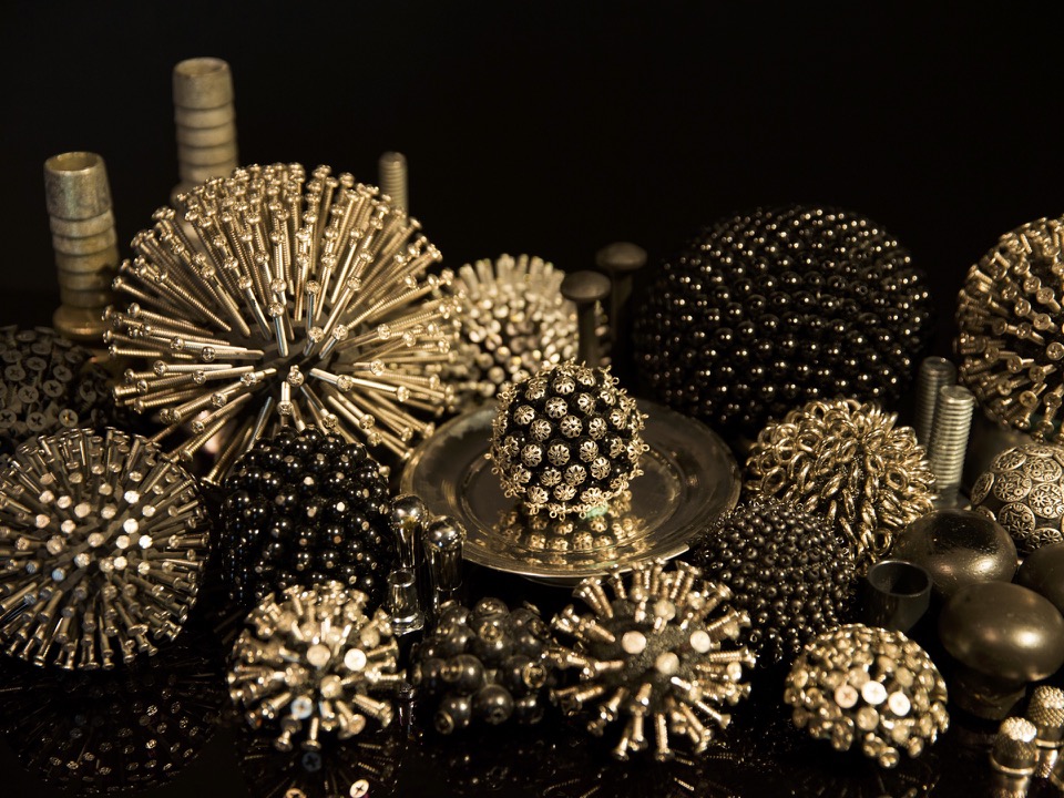 What appears at first glance to be clusters of corals in this installation reveal themselves to be entirely constructed from industrial materials: nails, screws, nuts and bolts. Even the atmospheric sounds in the background—the faint clinking and stirrings—which convey the mysterious ambience of an underwater grotto, have been composed from sounds made by the metallic objects used in the installation. While part of the magical quality of this imaginary seascape stems from the artist’s gift in composing fantastical new worlds out of prosaic objects, the work also alludes to the idea of a ‘constructed’ Nature, which finds its parallel in the image of Singapore as a ‘Garden City’, where nature is manicured and carefully cultivated.