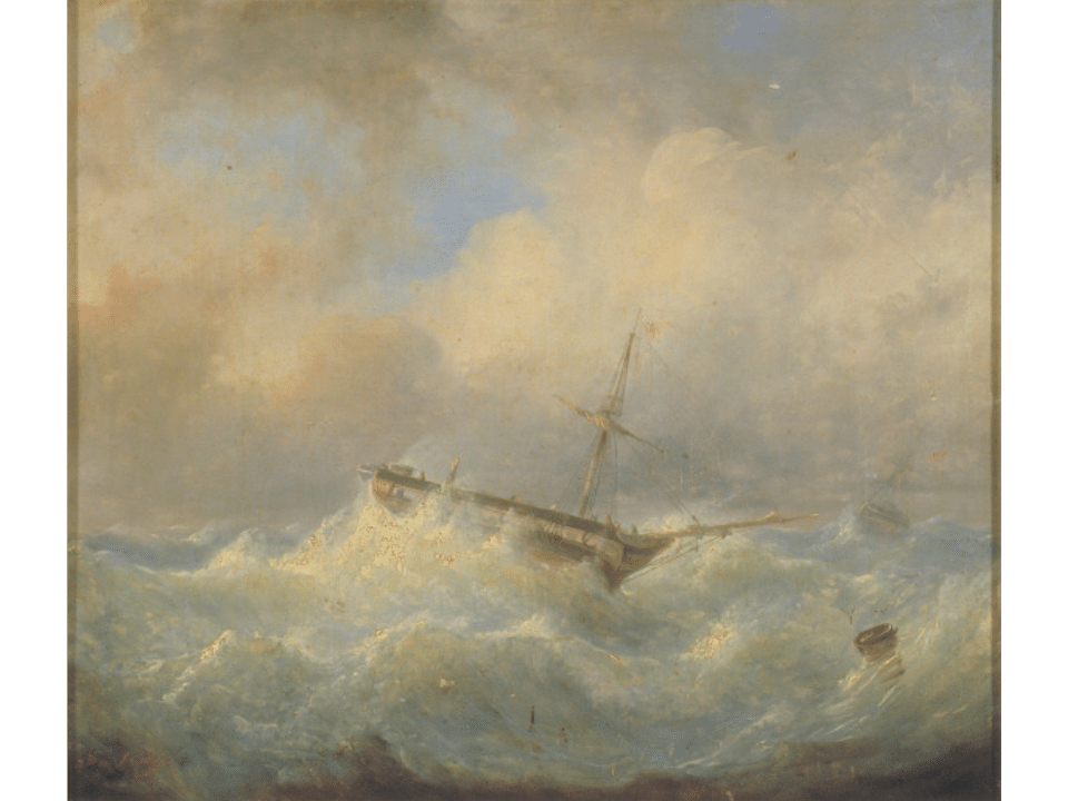 Raden Saleh (c. 1811-1880) is widely regarded as the first modern painter in Indonesia (then known as the Dutch East Indies). He spent over 20 years in Europe as an artist and despite being a colonial subject, showed he could equal his European contemporaries. Having travelled across the ocean from Java, he would have experienced first-hand some anxious moments at sea, and observed the North Sea closely while living in Holland. The varied treatment of the skies, waves and harsh winds also demonstrates his familiarity with marine art, a genre in Dutch painting from the 17th century that often exalted Dutch maritime trade and the colonial project.