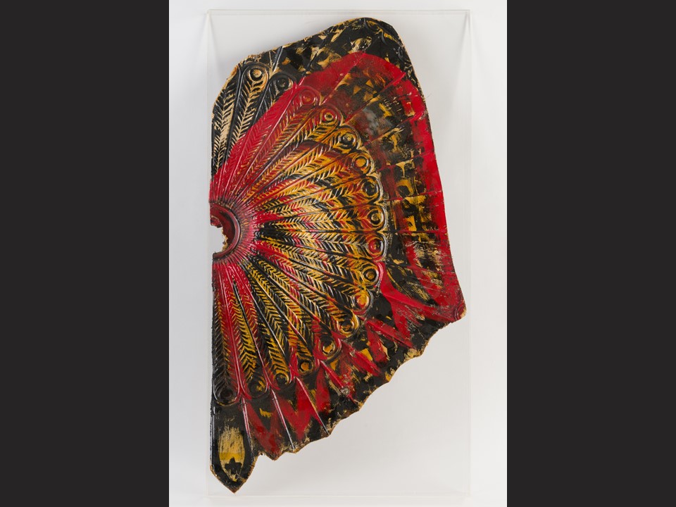 Found plaster molding, dye, acrylic, enamel, varnish