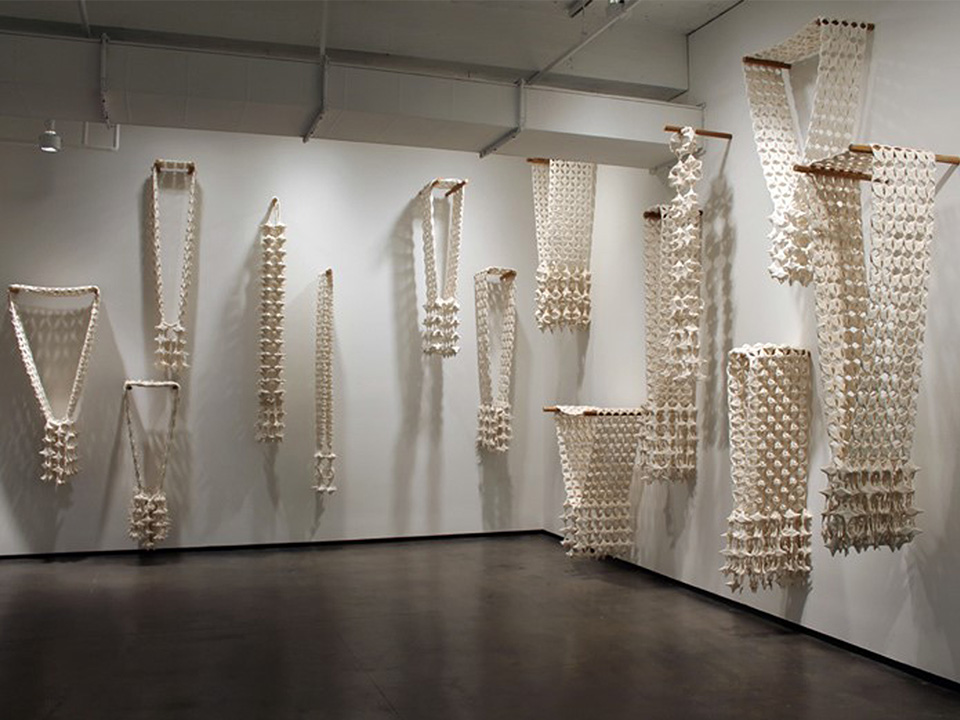 An art form originally taught to women in the Thai royal court, the phuang malai as an object deeply embedded in Thai culture, life and ritual, is evocative of femininity amidst enduring bonds of cultural tradition, and spirituality. Delicately handcrafted from toile, the delicate and monumental installation is, in the artist’s own words, “a subtle comment on the conditions of life, not only to cherish the wonders but also to pay respect to the struggles and losses”.