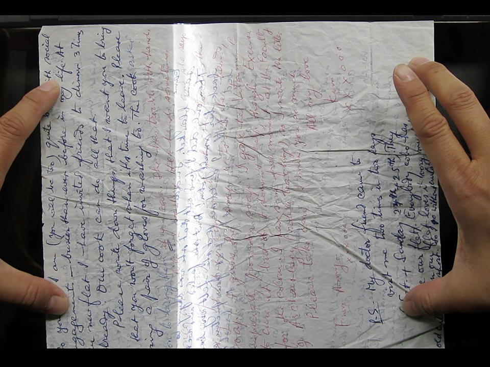 Scanning involves the act of scanning letters exchanged between Sanford’s parents. It unfolds in a measured and unhurried fashion, such that the repetition of placing, flipping and scanning of the sheets of thin, onion-skin papered letters bears a ceremonious, significantly cathartic quality. Here, it is as though the mundanity of photocopying the undecipherable scrawls carries the act of re-acknowledging, re-recording and archiving; it is an almost forensic activity that enacts a means of remembering – or not losing – the data and ‘memories’ exchanged between and carried by Sanford’s parents. In expanding her ‘letters’ series, Sanford is adopting personal artefacts of war and loss and using them to mediate her encounters with memory and the consciousness or unconsciousness of what is revealed and/or concealed.