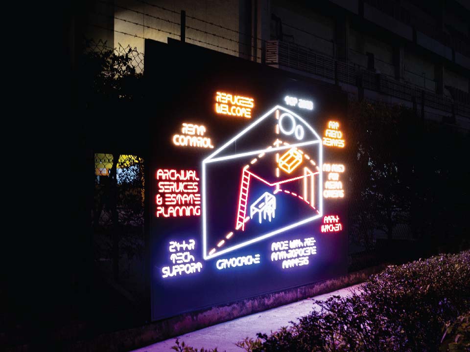 Creatif Compleks is the culmination of Michael Lee’s reflection on the function of the artist’s studio within the arts ecology of a city. The work takes the form of a diagram about a hypothetical property development consisting of various configurations of the artist’s home/studio. The use of LED rope lights, a popular fixture in advertising and interior design, alludes to latent apprehensions about the development and promotion of the arts in Singapore which today are, arguably, at a feverish pitch. Informed by myths and fantasies of artists in their studios, the work takes a speculative leap into the utopian and the absurd.